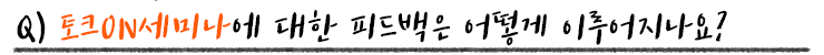 김양희 매니저님 | 지금은 공부에 대한 니즈만 있으면 다 찾아서 할 수 있는 환경인 것 같습니다. 토크 ON세미나의 경우, Q&A와 실습 위주로 진행되어 굉장히 유용하니, 관심이 있다면 꼭 찾아보세요!