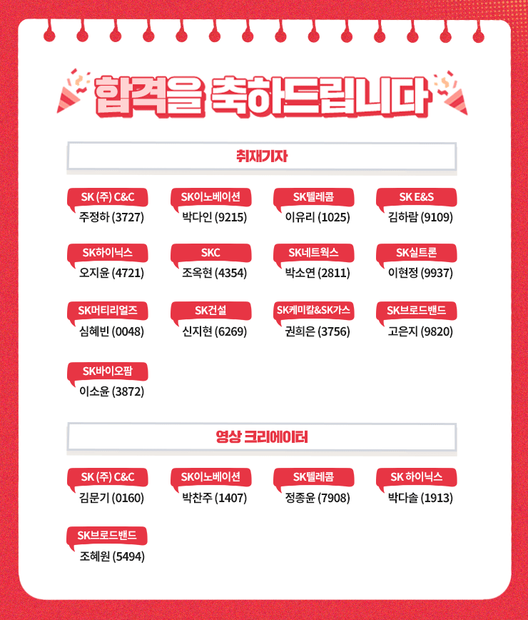 SK Careers Editor 13기 선발 최종 합격자를 발표합니다.