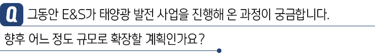 하지만 이러한 이유보다도 SK 그룹 차원에서 RE100, ESG 경영을 추진하며 환경과 기후, 그리고 사회에 긍정적인 영향을 줄 수 있는 에너지원을 적극적으로 지원하고 있는데요. 이에 따라 E&S도 본격적으로 태양광 사업을 시작하게 되었습니다.