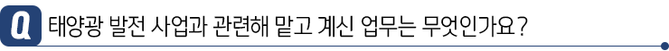 저는 국내 태양광 사업 개발을 맡고 있습니다. 우선 태양광 발전소를 지을 장소를 찾는 것부터 시작하여 인허가, EPC(Engineering Procurement Construction : 대형 건설 프로젝트의 설계, 장비 조달, 시공을 제공하는 사업) 선정 및 관리, 경제성 모델 분석 등 아무것도 없는 맨땅에서부터 태양광 발전소까지 총괄하는 업무라고 할 수 있습니다.