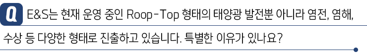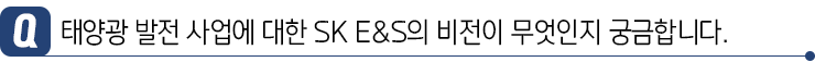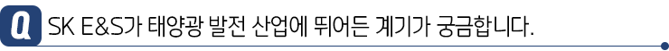 하지만 이러한 이유보다도 SK 그룹 차원에서 RE100, ESG 경영을 추진하며 환경과 기후, 그리고 사회에 긍정적인 영향을 줄 수 있는 에너지원을 적극적으로 지원하고 있는데요. 이에 따라 E&S도 본격적으로 태양광 사업을 시작하게 되었습니다.