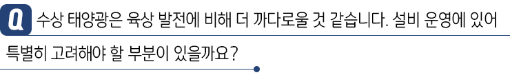 물 위에 있다 보니 운영에 있어 훨씬 까다로운 것이 사실입니다. 바다 근처에 있으면 염분에 의한 부식 문제도 신경 써야 하고, 파도가 칠 때 받는 힘에도 버틸 수 있게 설계를 해야 합니다.