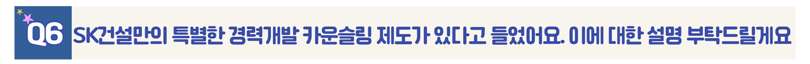 앞서 말씀드렸던 Pathfinding Center에서 제공하는 Service 중 1가지인데요. 바로 ‘구성원 보물지도 카운슬링’입니다. 보물지도 카운슬링은 구성원 스스로 수립하는 행복사업 계획을 내/외부 전문가의 진단 및 커리어 코칭 등을 통해 바르고 정확한 성장 경로 길잡이를 제공해 주는 것입니다.