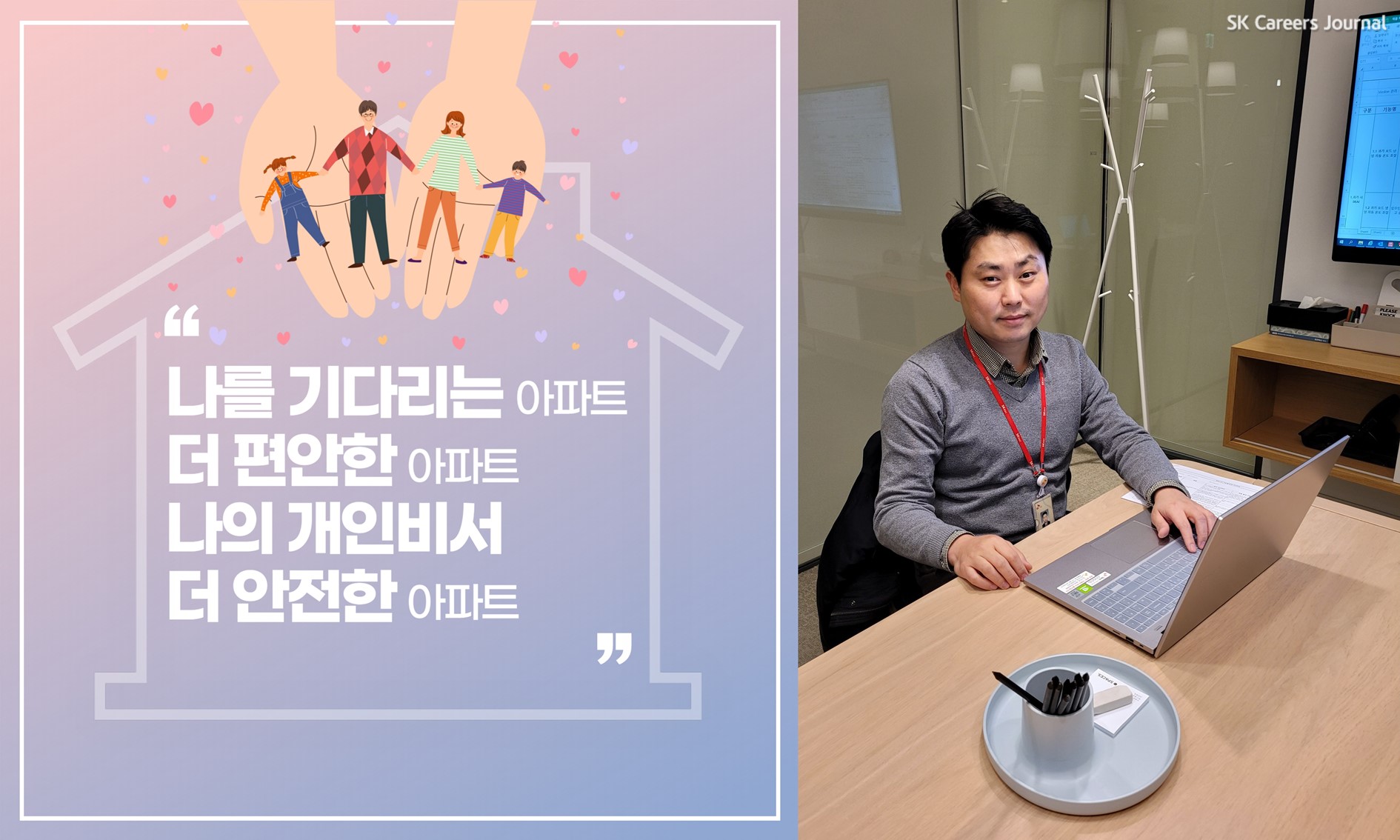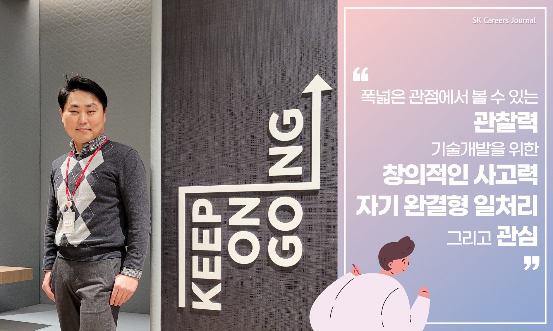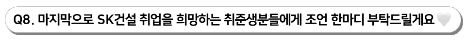 지금까지 SK건설에서 SK VIEW 상품개발을 책임지는 양승백 프로님의 이야기를 들어봤습니다. 어떠셨나요? 업무에 대한 뜨거운 열정과 고객을 생각하는 마음을 고스란히 담은 인터뷰가 아니었나 싶은데요. 기전기술팀의 필수 역량 4가지로 관찰력, 창의적 사고력, 자기 완결형 일처리, 그리고 자신의 관심분야와 세상에 대한 끊임없는 관심이 중요하다는 프로님의 말씀을 꼭 명심하시길 바랍니다!