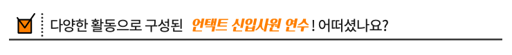 또, 동기들끼리 과연 친해질 수 있을까, 사이버 친구가 되는건 아닐까 걱정이 많았는데 그것도 전혀! 문제가 없었어요. 랜선 홈트, 랜선 쿠킹, 랜선 티타임처럼 네트워킹 시간도 다채롭게 준비해주셔서 동기들과는 정말 짱친이 됐어요. 그리고 ‘Biz 이해 프로젝트’라는 팀 프로젝트를 하면서 더 동기들과 끈끈해질 수 있었어요. 지금도 카카오톡이나 인스타그램과 같이 SNS로 소통하는 건 물론이구요, 출근해서도 전혀 어색하지 않게 어울리고 있어요.