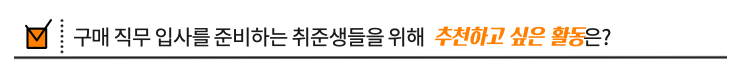 경영지원 직무 전반에서 가장 중요한 역량은 분석력과 발표력이라고 생각해요. 그리고 ‘구매’ 직무로 한정을 지어서 예를 들어보면, 노트북을 산다고 할 때, 예산이나 용도와 같은 사정에 맞춰 신제품이 곧 나오는지, 제품끼리 어떤 차이가 있는지, A/S는 어떻게 받을 수 있는 지 등등 여러 가지를 고민하잖아요. 저는 회사도 똑같다고 생각을 해요. 이렇게 회사에서 질 높은 구매를 하려면 우리 회사뿐 아니라 업계 상황, 기술 트렌드를 알고 인사이트를 도출할 수 있어야 하는거죠. 그런 점에서 분석력이 중요한 역량 중 하나라고 말씀 드리고 싶어요. 그리고 저는 인턴십을 하면서 보고서도 많이 작성해보고 평가도 받았는데 그 경험이 훗날 비즈니스 분석력을 키우는 데 큰 도움이 되었던거 같아요. 또 발표력에 대해서 말씀 드리면, 발표는 분석한 내용을 표현하는 수단이잖아요? 그런 점에서 굉장히 중요한 거 같아요. 음식도 어느 그릇에 담느냐에 따라서 맛도 달라지고, 가격도 달라지잖아요. 그래서 분석한 내용을 잘 전달할 수 있는 발표력도 정말 중요한 역량이라고 생각해요.