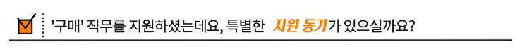 회사의 본질과 ‘구매’의 본질이 가깝다는 생각이 들었어요. 이 점에서 매력을 느끼게 되어서 다양한 직무 중에서도 ‘구매’ 직무에 지원하게 되었습니다. 사실 하루 종일 뭘 살까 고민하게 되잖아요, 사소하게는 점심 식사는 어떤 메뉴로 할 지, 미용실은 어디로 갈 지 이런 고민이요. 회사도 마찬가지라고 생각해요. 회사가 운영이 되려면 수많은 물건과 서비스가 필요하잖아요. 이런 면에서 ‘구매’ 직무 업무는 이런 수많은 물건과 서비스를 사면서 회사 안팎의 환경을 이해하고 경영의 최적화를 이루는 일이라고 생각해요. 또, 문과 직무 중에서도 ‘구매’ 직무가 생산과 연구 개발에 가장 밀접하게 관련되어있다는 점에서도 타 직무보다 더 끌렸던 거 같아요. 그리고 구매 직무 특성상 사람을 많이 상대하는 직무인만큼 제 외향적인 성격과도 잘 맞을 거 같더라구요. 그래서 경영지원 안의 다양한 직무 중에서도 Battery 설비 ‘구매’ 직무로 지원을 하게 되었습니다.