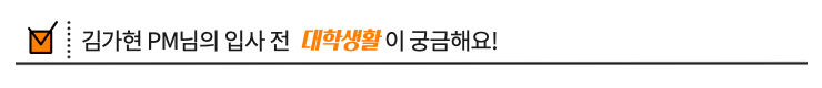학과 공부 외에도 최대한 많은 경험을 해보려고 했어요. 정부부처에서 기자단 활동을 했던 것도 기억에 남아요. 1년 동안 스스로 콘텐츠를 기획하고 팀원들과 전국 곳곳을 취재하면서 견문도 넓히고, 처음 보는 사람한테 불쑥 인터뷰를 걸어보는 용기도 가질 수 있었어요. 면접을 볼 때, 면접 내내 표정이 밝다는 얘기를 면접관님이 해주셨는데, 아마 이렇게 부딪쳐본 경험이 쌓인 덕이었던 거 같아요.