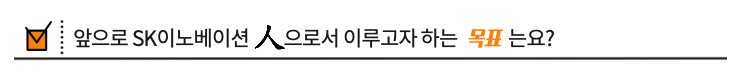 그리고 두번째 목표는요, 앞으로도 계속 SK이노베이션이 취준생이 선망하는 회사 1위가 될 수 있도록 하는 거예요. 이번에 한국일보에서 기사가 났더라구요, 대한민국 최고의 직장 2021 1위로요. 하하. 사실 첫 출근 날 정말 충격 받았어요. 회사 분위기가 정말 자유롭고 수평적이거든요. 앞으로 합류하실 구성원분들과 이 기분 좋은 충격을 나누기 위해서 SK이노베이션 조직 문화를 더욱 발전시킬 수 있도록 노력하겠습니다!