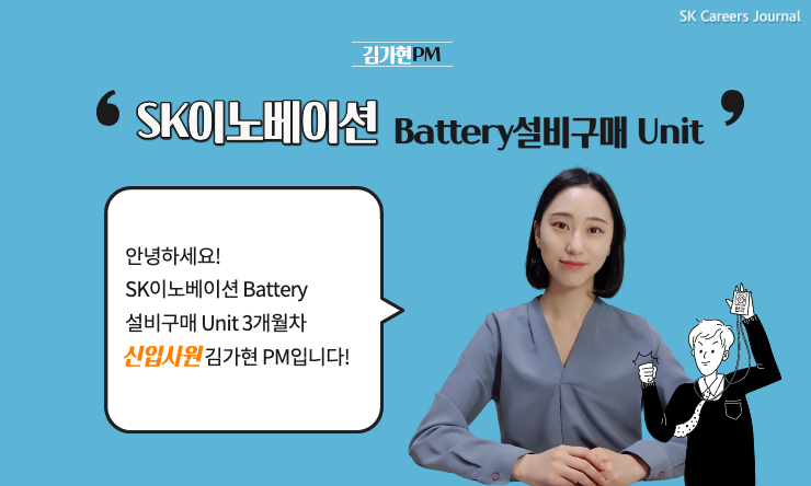 안녕하세요, SK이노베이션 Battery설비구매 Unit 김가현 PM입니다! 지난 1월에 입사해서 입사 3개월차인 신입 구성원입니다.