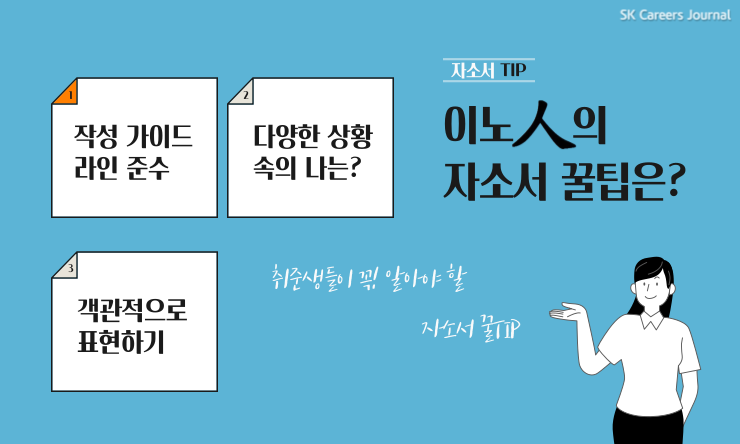 먼저, 기본적인 것부터 말씀을 드리고 싶어요. SK이노베이션 자기소개서에는 작성 가이드가 있어요. 그 작성 가이드를 잘 따르는 것이 제일 중요하다고 생각해요. 문항을 보시면 ‘어떤 내용이 드러나게 서술’이라고 구체적으로 명시를 해주거든요. 아무래도 한 문항당 글자수가 제한되어있기 때문에 이 부분을 놓치기가 쉽더라구요. 그래서 저는 표를 그려서 이 가이드라인에 맞게 제 이야기를 채워나갔어요. 예를 들어서, 어떤 에피소드가 있으면 이 에피소드는 어떤 부분을 충족할 수 있었고 어떤 부분은 충족하지 못했는지 그렇게 표로 체크하다 보니 놓친 부분이 한 눈에 보였어요. 그래서 계속해서 놓친 부분을 메워나가기 위해 노력했습니다.
