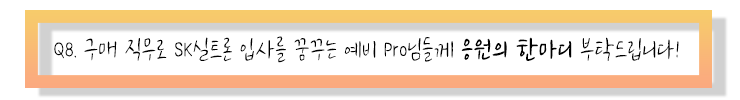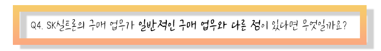 지금까지 김주엽 Pro님과 함께 SK실트론 구매팀의 이모저모를 알아보았습니다. 구매 직무는 전공에 제한을 두지 않는 열린 직무라고 하니까요, 아직 진로를 고민하는 분들께서는 구매 직무를 고려해보는 것도 좋을 듯합니다. 이 기사가 많은 분들께 도움이 되었기를 바라며, 에디터와는 또 다른 이야기에서 만나요!