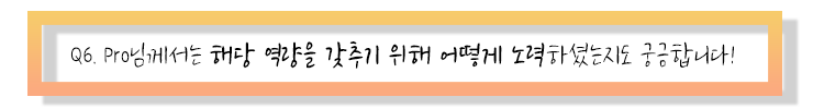 그리고 평소에 플래너를 사용해 일정 관리를 하고 있는데요. 긴급한 업무가 생겼을 때 이전에 계획한 다른 업무와 비교해 우선순위를 정하거나, 어려운 일을 여러 개의 Task로 나눈 다음 할 수 있는 일부터 먼저 하는 등 돌발 상황에서도 계획적으로 일을 처리하기 위해 꾸준히 노력하고 있습니다.