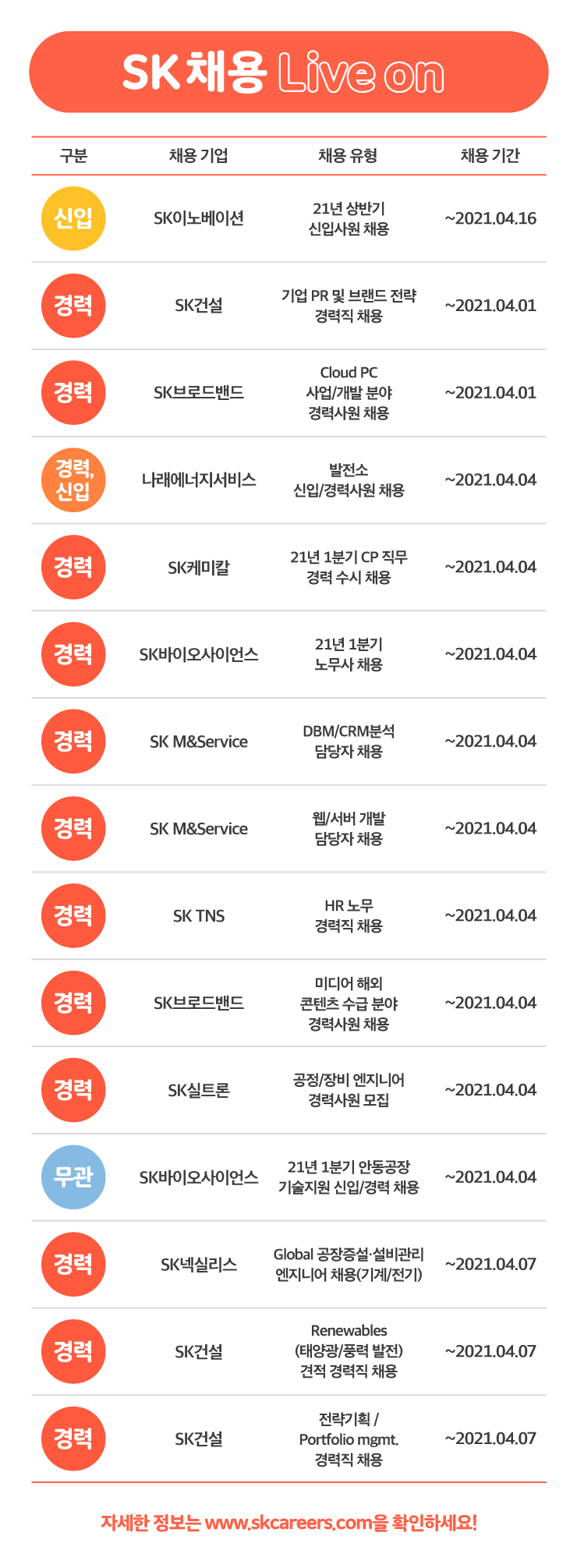 SK그룹 채용 4월 2주차 (0) | 2021.04.07 |
