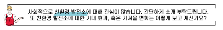 그린리노베이션 사업은 노후 발전소를 인수하고 성능 개선을 하여 가치를 높인 후 매각 또는 운영을 통하여 수익을 창출하는 사업입니다. 사업성 분석, 투자, PF (Project Financing) 방식 자금 조달, 건설 및 운영 관리 등 다양한 직무를 필요로 하는 투자 개발형 사업입니다.