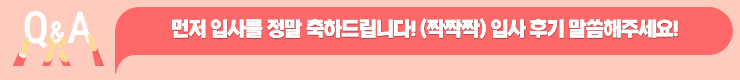 지원 PM : 저도 현수 PM님처럼 이번이 첫 취업 준비였어요. 다른 분들처럼 걱정도 많이 됐고 안 그래도 코로나 사태 때문에 취업이 더 힘들지 않을까 더 걱정되었던 것 같아요. 그럼에도 불구하고 서류 합격부터 최종 면접까지 좋은 결실을 맺게 되어서 정말 기분이 좋더라구요. 또, 기업 문화에 대해서도 정말 만족하고 있구요.