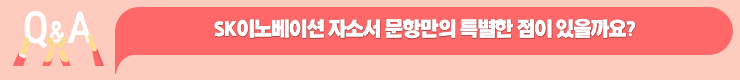 정현 PM : 맞아요, 가현 PM님이 말씀해주신 것처럼 매우 친절한 자소서라고 생각해요. 가이드라인에 꼭 넣어야 할 키워드도 함께 제시해주거든요. 자소서를 쓰다 보면 단순히 자신을 어필하는 내용을 많이 쓰게 되잖아요? 그러다 보면 정작 물어본 내용에 대해서는 놓치기 쉽더라구요. 사실은 자신을 어필하는 것도 중요하지만 정말 물어보고자 한 내용을 잘 담아야 하는데 말이죠. 그런 면에서 SK이노베이션 자소서는 가이드라인을 정확히 주고 있어서 놓치지 않고 잘 적을 수 있었던 것 같아요.