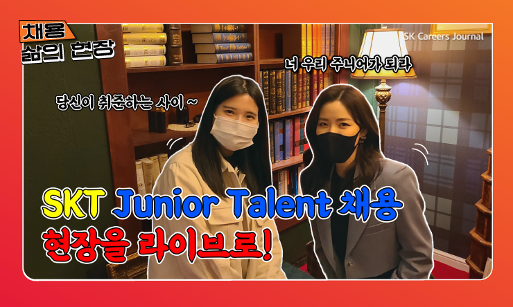 그 중에서도 SKT 채용소식을 자세히 알아보기 위해 SK그룹의 채용영상 <당신이 취준하는 사이> 사전녹화 현장을 다녀왔습니다. SKT에는 ‘Junior Talent 채용’이라는 전형이 있다고 하는데요, 바로 0-3년의 직무 경험(경력)을 가진 지원자를 대상으로 하는 전형이라고 합니다! 신입으로 지원하는 지원자분들은 이 전형으로 지원하면 되겠죠?