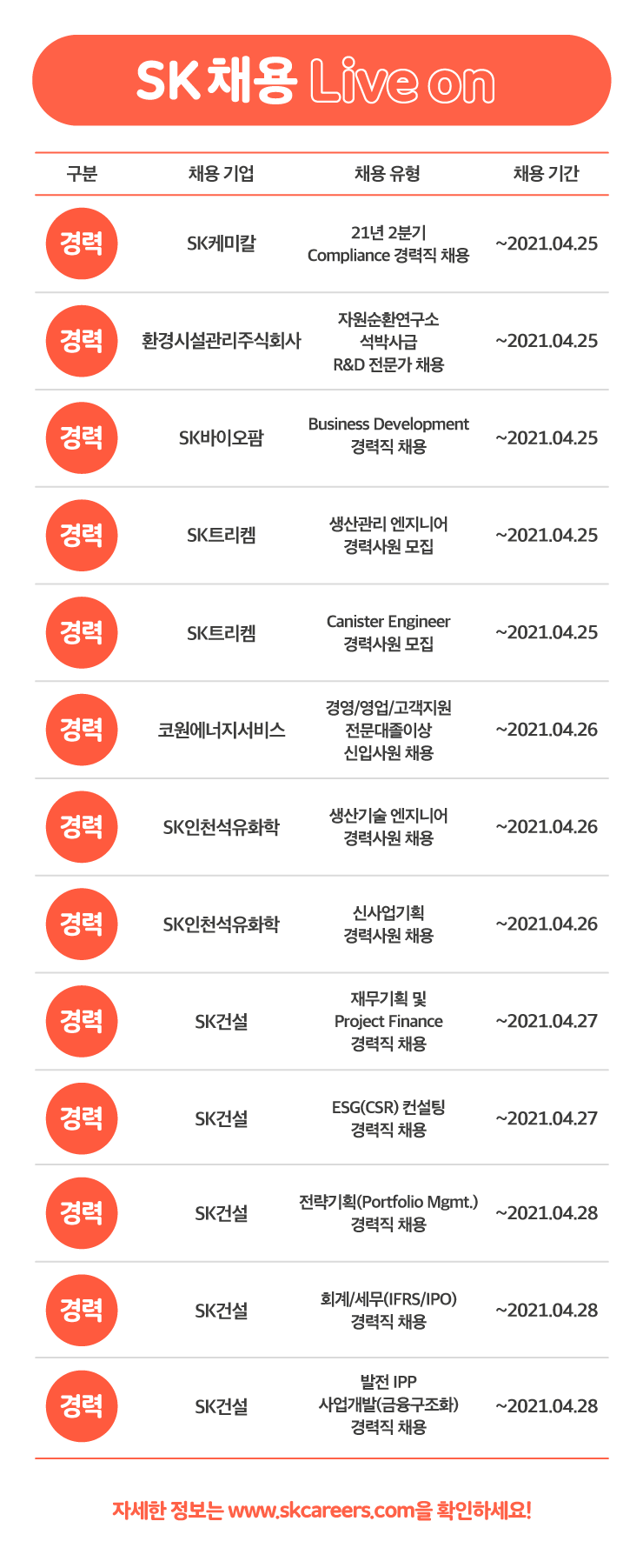 SK그룹 채용 4월 5주차 (0) | 2021.04.28 |