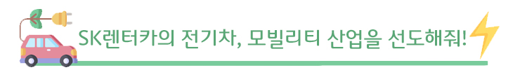 SK렌터카의 앱이나 웹을 통해서 조금 더 편리한 방식으로 시간도 아낄 수 있게끔 하여 전기차를 이용할 때 당면한 번거로움을 해결해 드리는 거죠. 가격도 경쟁사들에 비해서 저렴하게 제공하고, 더 안전하게 전기차를 운전하실 수 있도록 많은 노력을 기울이고 있어요.