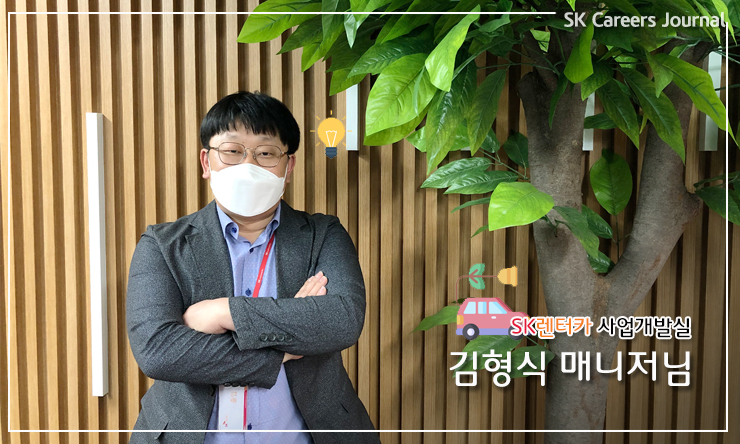 안녕하세요, SK렌터카 사업개발실의 김형식 매니저라고 합니다. 전기자동차 또는 충전 인프라와 관련된 신규 비즈니스 모델 개발을 주 업무로 하고 있어요. 팀에서 ‘박사’라는 별명을 가지고 있는데요 공학박사 학위가 있는 것도 맞지만, 2011년 입사 이후 팀 이름은 바뀌어도 저는 계속 전기차와 관련된 업무만 했거든요. 업무용 메일 주소를 만들다가 아이디에 ‘EV(Electronic Vehicle)’를 붙였는데, 그래서 이 일에서 못 벗어난다는 농담을 하곤 합니다. (웃음)