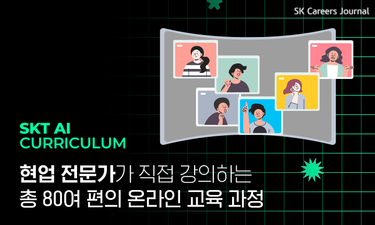 SKT AI 커리큘럼은 SKT AI 전문가들이 AI 분야에서 쌓아온 지식과 실무 노하우를 온라인 강의로 가르쳐주는 대학(원)생 대상 AI 교육 프로그램입니다. 수강생들은 자연어 처리, 컴퓨터 비전 등 다양한 AI 기술을 분야별 전문가들로부터 강의를 들을 수 있습니다. SKT AI 커리큘럼은 2017년부터 시작해 2020년에는 18개 대학의 53개 정규 과목으로 채택되었답니다.