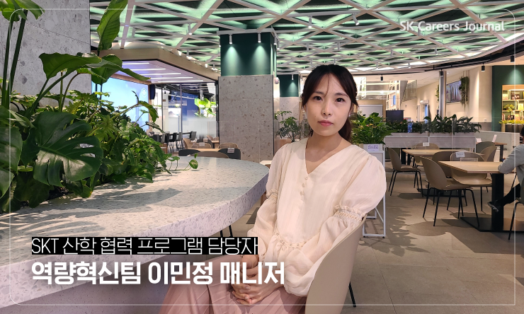 안녕하세요, SK텔레콤 구성원의 역량을 강화하고 육성하는 HRD 담당자 이민정 매니저입니다. 2018년 SK텔레콤에 입사해 기업문화센터 Competency그룹 역량혁신팀에 재직 중이예요. 작년부터 SKT의 산학 협력 프로그램을 맡고 있어요.