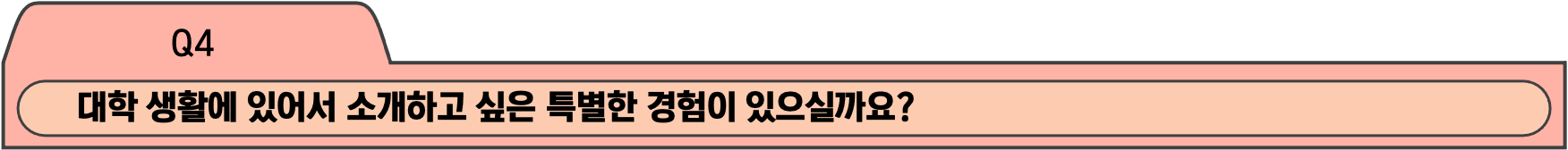 지나고 보니 모든 순간이 특별했던 것 같습니다. 너무 상투적인 답변이었나요? 개인적으로 저는 저학년 때 학점을 여유롭게 들어놓고 관심 직무나 회사에 잠시 몸을 담는 것도 좋은 경험이 될 것이라고 생각합니다. 저 같은 경우에도 3학년 마치고 일상이 심심해서 6개월간 인도에서 인턴십을 하기도 했어요.