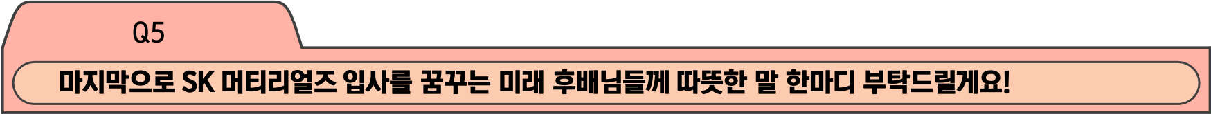 SK머티리얼즈의 숨겨진 이야기를 소개하는 ON & OFF시간! 즐거우셨나요? 인사담당자로서 알려주는 인사 업무에 대한 역량부터 선배로서 말해주는 따뜻한 조언 까지! 김희균 PL님 덕분에 알차면서 마음이 따뜻해지는 시간이었습니다.