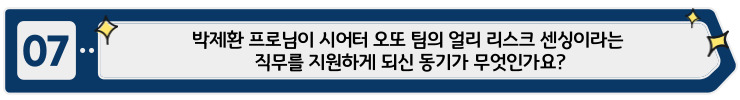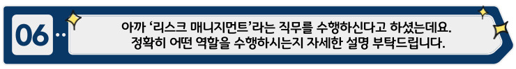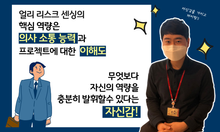 제가 주로 하고 있는 일은 리스크 얼리 센싱입니다. 프로젝트에서 발생할 수 있는 리스크를 사전에 파악해서 임팩트를 최소화시키는 것이 주요한 임무입니다.