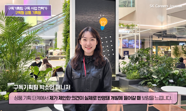 구독형 상품을 기획할 때는 극적으로 영감을 얻을 때도 있지만 소비자 조사를 통해 고객의 의견을 듣거나, 실제 상품을 판매하고 있는 T매니저님들과 인터뷰를 하는 등 다양한 의견을 듣고 반영하고 있습니다.