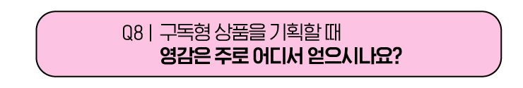 기본적으로 트렌드 리포트에서 트랜드 변화의 흐름을 읽고, #구독 키워드에 뜨는 새로 출시된 서비스를 모두 사용해봐요. 가끔 전혀 상관없는 서비스를 발견해도 ‘이러한 특성은 응용하면 좋겠다.’ 할 만한 아이디어에서 착안해 회의에서 의견을 내기도 합니다.