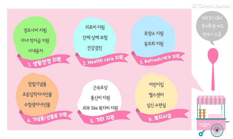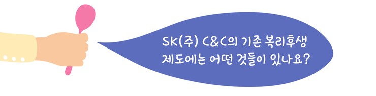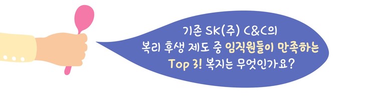 SK(주) C&C는 복리 후생 제도가 다양하기로 유명한데요, 오늘은 3월부터 새롭게 개선된 SK(주) C&C의 복리 후생 제도와 기존의 복리 후생 제도까지 소개해드리려고 합니다! 과연 기존의 복리 후생 제도는 어떤 것들이 있고, 새롭게 개선된 복리 후생 제도는 어떤 것들일지 지금 맛보기 스푼 들고 SK(주) C&C로 함께 가볼까요? 고고!
