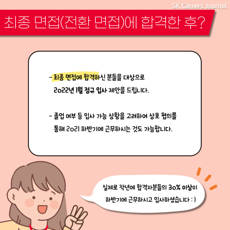 최종(전환) 면접에 합격하신 분들을 대상으로 2022년 1월 정규 입사 제안을 드립니다.