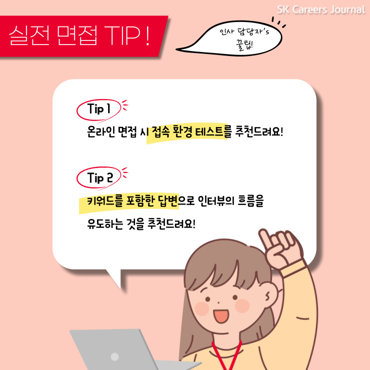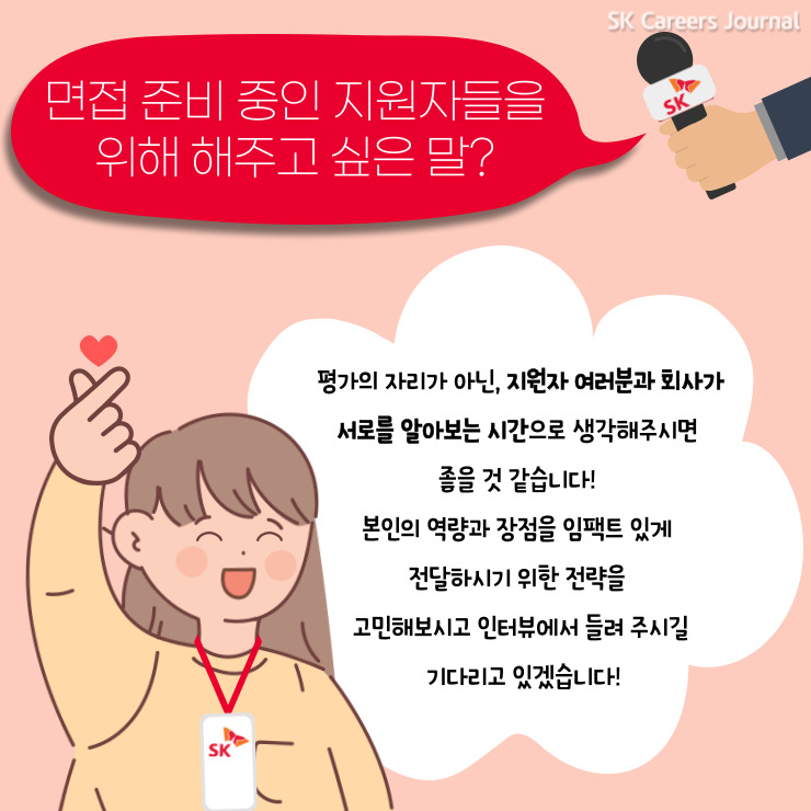 면접을 준비 중이신 예비 SK인들에게 실전 필살 면접 팁 2가지를 소개해드리겠습니다.