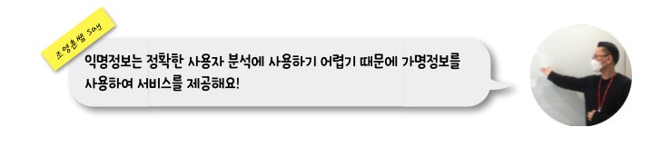 또한 마이데이터는 새롭게 가명정보를 활용할 수 있어요. 가명정보는 익명정보보다는 세밀한 데이터를 제공해요. 익명정보의 경우 데이터를 활용하는데 애로사항이 있어요. 익명정보는 개인의 정보를 비식별화하기 위해서 정보가 대부분 범주화되어 제공되기 때문에 사용자 분석이 어려워요. 예컨대 20대 초반/중반/후반의 성향이 다르잖아요. 지역 단위로도 다르고요. 그렇기 때문에 정밀한 사용자 분석에 활용하기에는 어렵죠. 반면에 가명정보는 익명정보의 범주화된 데이터보다 조금 더 세밀한 정보를 제공하죠.