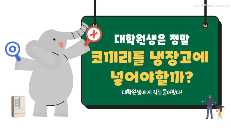 젤리 : 보통 대학원은 늦게 끝난다. 워라벨이 없다고 하잖아요, 근데 저희 연구실은 자율 출근이에요. 연구실 바이 연구실이지만 놀고 싶으면 놀아도 돼요! 근데 일하다 보면 12시간 정도는 일하긴 해요. 하하. 이것도 연구실 바이 연구실 같아요. 뭐 억지로 시켜서 하는 건 아니고 일이 있으니까 자발적으로 하게 되더라고요. 그래도 일을 한다는 느낌보다 공부를 한다는 게 커서 힘들지는 않아요! 다만 연구실 과제가 수행하는 데 있어서 연구 분야랑 연과 적으면 좀 고생스럽긴 하죠. 늦게까지 있는 연구실도 있지만 이것도 연구실 바이 연구실! 뭔가 대학원에 오기 전에는 대학원생들의 찌들어 있는 모습들을 상상했는데 담배도 안 피고 되게 즐겁게 임하는 것 같아 보여요. 근데 코끼리를 넣어야 하는 것은 맞아요. 그건 팩트입니다. 다만 알고 계신 것과 다른 것은 대학원생들은 그걸 다 해낸다는 것..?