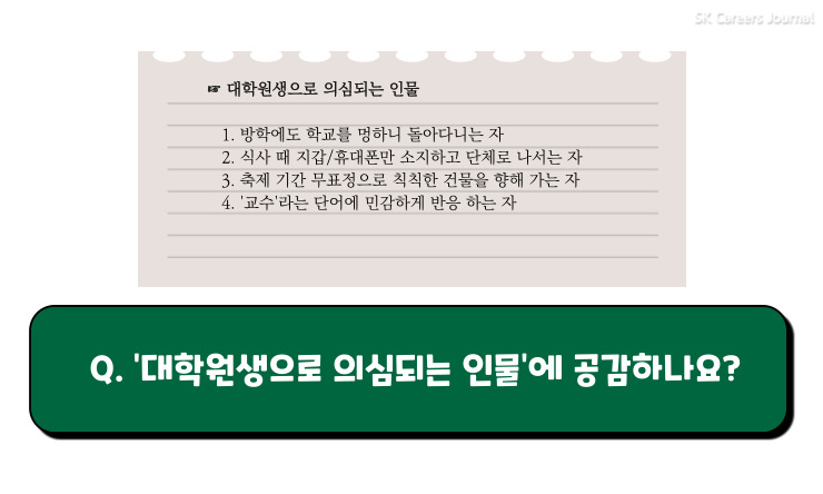 익명이 : 네. (웃음) 완전 공감! 축제 때 대학원생도 설레긴 해요. 하하. 요즘 코로나때문에 축제는 없지만요 ㅠㅠ