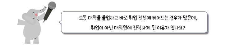 익명이 : 음.. 학교 수업을 들으면서 대학원 진학을 하지 않으면 전공을 살려서 취업하기 힘들다는 얘기를 많이 듣기도 했고, 나중에 취업할 때 R&D쪽으로 취업을 하고 싶어서 대학원에 오게 됐습니다.