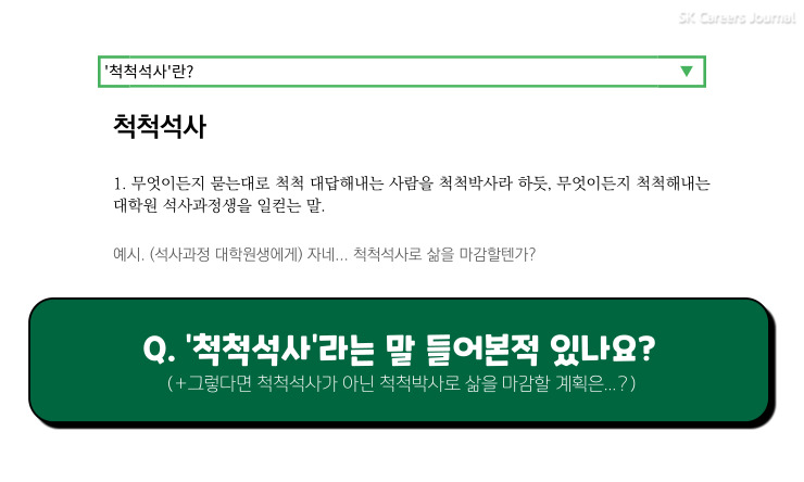 익명이 : 척척석사! 하하. 많이 들어봤죠. 척척박사는 긍정적으로 고민 중입니다. 박사는 1~2년으로 뚝딱 되는 게 아니라서 고민이 많이 되네요.