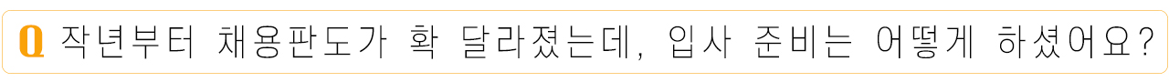 기태 비장의 무기까지는 아니지만(웃음) 면접 끝까지 평정심을 유지하기 위한 본인만의 요령을 만들면 좋을 것 같아요. 저는 긴장하면 말 속도가 빨라지는 버릇이 있는데, 그럴 때마다 말 속도를 늦출 수 있도록 의도적으로 잠깐의 심호흡을 하면서 평정심을 찾도록 노력했어요. 또 같은 면접 대답 내용이라도 어떻게 말하는지 그 표현방식이 신뢰도를 결정하기도 하는 것 같아요. 저는 ‘두괄식으로 말한다’, ‘사례를 들어 설명한다’ 등의 표현방식을 연습했고 그게 면접에서 도움이 되지 않았나 생각합니다.