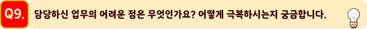 저희 회사 모든 부서가 마찬가지이겠지만, 회사의 사업 영역/규모에 비해 인원이 적습니다. 한 사람이 다양한 분야의 업무를 해야 하다 보니, 처음 사업 진출 시 시행착오가 다소 있는 것 같습니다. 극복하는 방법은 사람마다 다르겠지만, 저는 제가 아는 것과 모르는 것을 명확히 하고, 모르는 부분을 해결하기 위해 최대한 레퍼런스를 많이 찾고 주변의 네트워크를 활용하는 편입니다. 연차가 쌓일수록 질문하는 것이 어려워진다고 하던데 저는 아는 척하는 것보다는 모르는 것을 인정하고 빨리 해결책을 찾는 것이 추후에는 도움이 되는 편이라고 생각합니다.