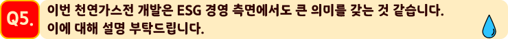 SK E&S는 호주 가스전의 채굴부터 수소 생산에 이르기까지 전 과정에서 이산화탄소 배출을 최소화할 것입니다. 자원 확보, 개발, 액화, 발굴 등 LNG 밸류체인을 지속적으로 확대하면서 환경과 사회에 대한 책임도 잊지 않는 SK E&S! 글로벌 친환경 에너지 기업 SK E&S와, 이런 SK E&S의 여정에 함께할 여러분을 응원합니다.