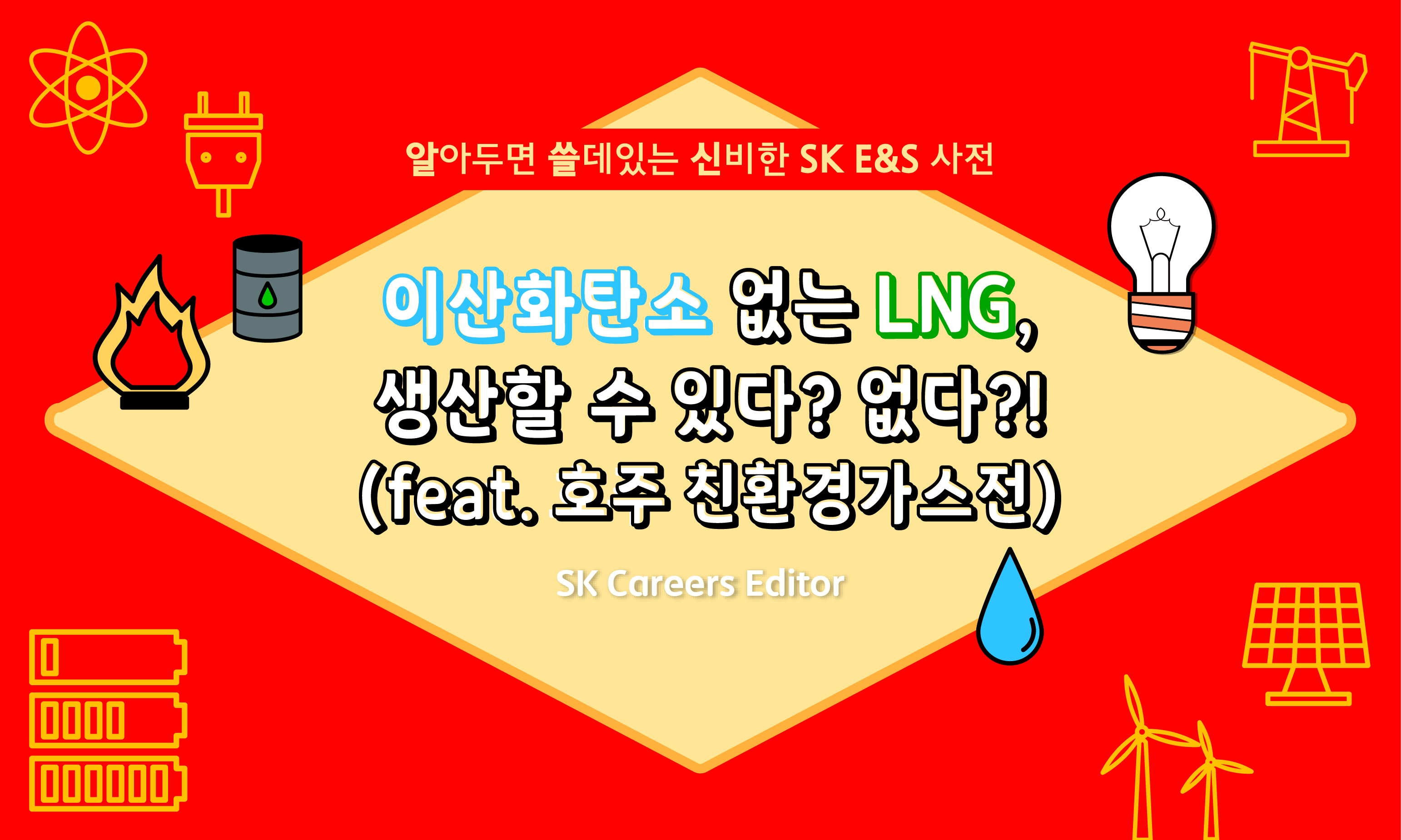 ESG 경영, 다들 들어보셨죠? 전 세계 적으로 환경 훼손을 최소화하고, 사회적 책임을 다하며, 건강한 지배 구조를 만들어 지속 가능한 발전을 추구하는 ESG 경영의 중요성은 날로 커지고 있습니다. 이러한 전 세계의 트렌드에 발맞춰 친환경 에너지 기업인 SK E&S도 지난 3월 30일, 2021년부터 개발해 온 호주 바로사-깔디따 해상가스전의 최종투자의사결정(FID)을 선언하고 매장량 7천만 톤 이상의 LNG 생산에 착수한다고 발표했습니다. 천연가스 생산 과정에서 발생하는 이산화탄소를 제거하는 CCS (Carbon Capture & Storage) 기술을 활용해 CO2 Free 저탄소 LNG를 생산한다고 하는데요! 글로벌 메이저 친환경 에너지 기업으로서 온실가스 감축에 적극 앞장서는 SK E&S LNG투자사업CoE팀에서 근무하고 계신 정순형 매니저님을 만나보겠습니다.