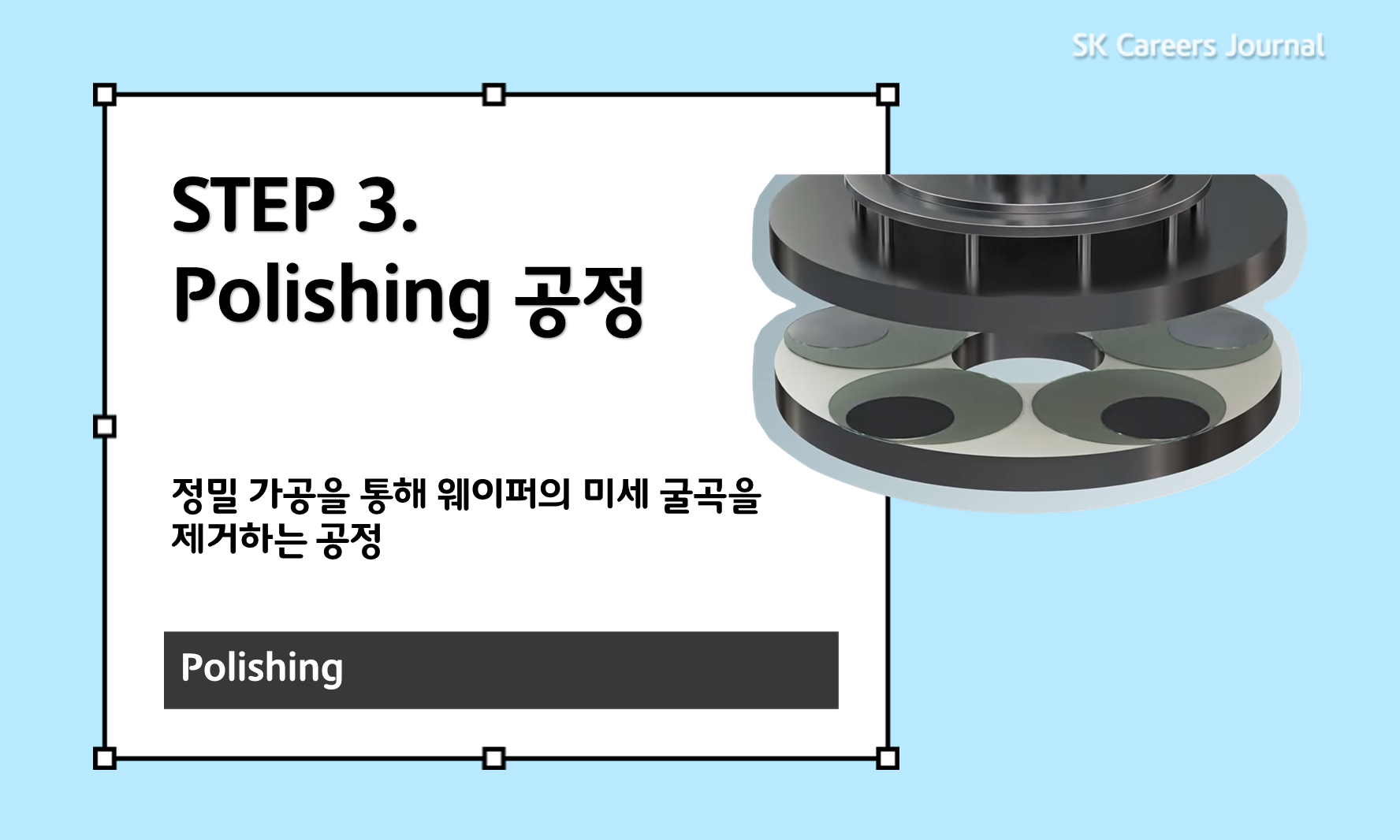 Polishing 공정 물리적/화학적 방법을 이용해 웨이퍼를 평평하게 만듭니다.