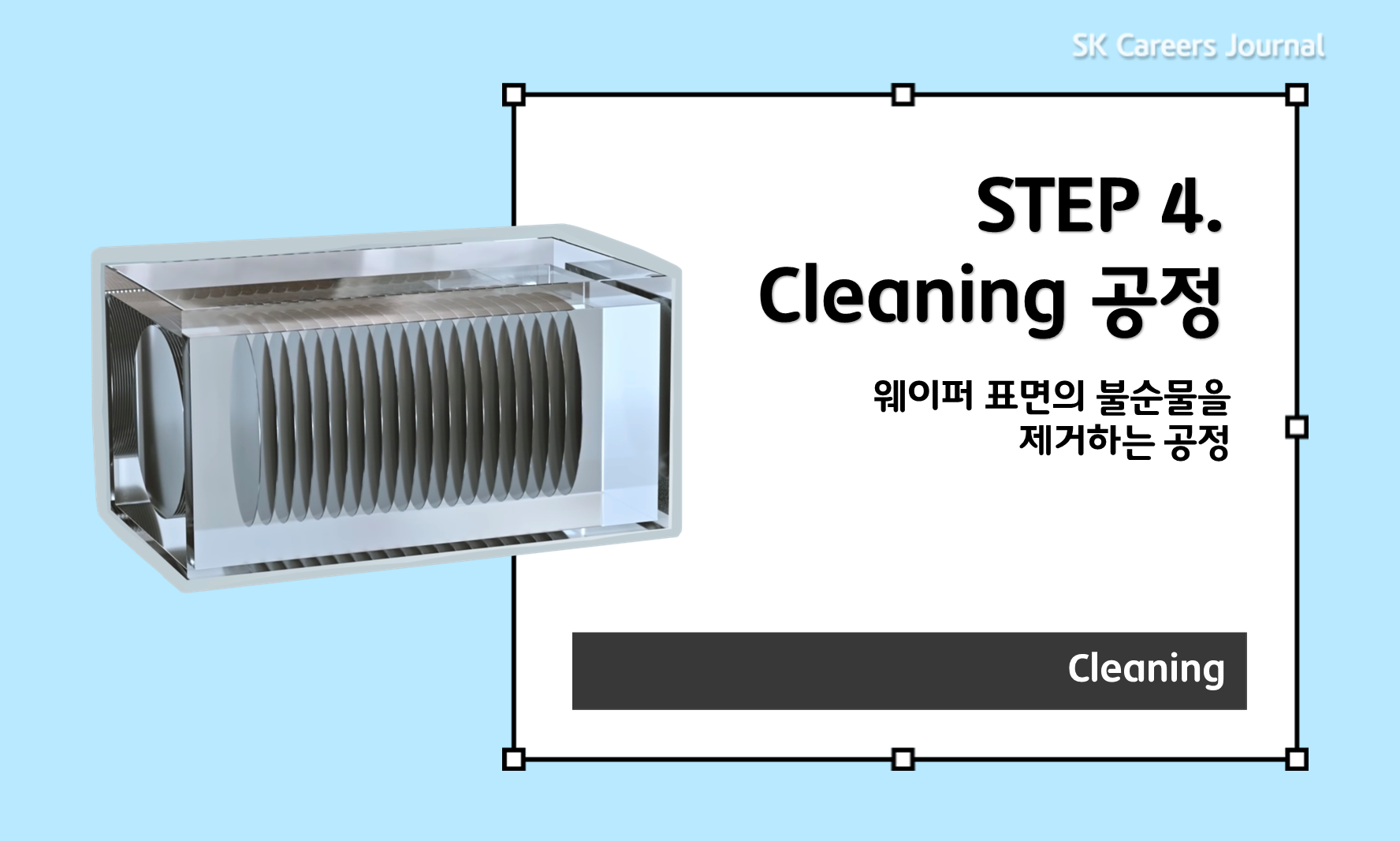 Cleaning 공정 웨이퍼에 남아있는 연마제 등 각종 오염을 제거합니다.
