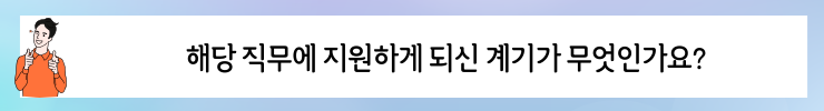 노하은 프로님 – 타임 스케줄이 타이트 한 부분이 가장 힘들었습니다. 서류 발표 나고 1주일 간격으로 인적성, 1차 면접, 2차 면접, 출근이 이루어지다 보니 그 부분이 가장 어려웠습니다. 최대한 컨디션 조절을 하기 위해 매일매일 규칙적으로 생활하려고 노력했습니다.