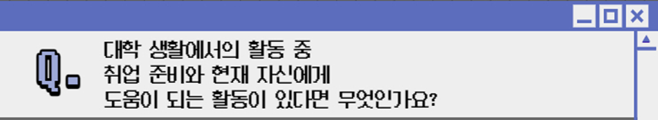 인성 측면에서는 Teamwork 와 Communication 이 중요하다고 생각합니다 . 팀내 협업뿐만 아니라 사내 유관 부서나 외부 협력사와도 함께 일하기 때문에 채용 과정에서 단골질문으로 여러 사람들과의 협업 경험 , 갈등 해결 경험 등을 확인하는 것 같습니다 . 저는 대학생활 중 취업과 관련 없는 취미 (ex. 춤 ) 관련 동아리나 봉사활동에서의 경험을 소통능력과 팀워크로 연관 지어 풀어냈습니다 . 그러니 취직과 별개로 소신껏 대학생활을 즐기시면 좋을 것 같습니다 .