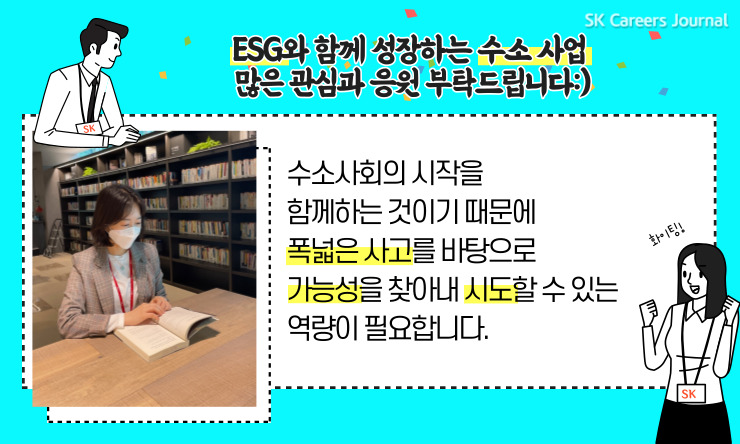 ESG경영이 강화되면서 환경을 생각하며 발전하는 SK에코플랜트와 한걸음 한걸음 발맞춰 걸어가는 수소사업그룹 여러분을 응원합니다:)