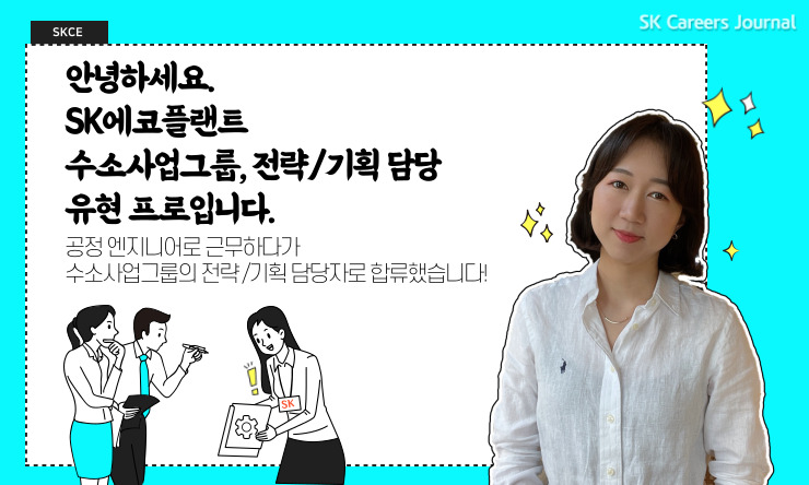 안녕하세요, SK에코플랜트 수소사업그룹 유현 프로입니다. 저는 입사한 지 어느덧 10년 차가 되었고 (feat 고인물…) 현재 수소사업그룹에서 수소사업 전략/기획 업무를 담당하고 있습니다. 원래는 공정 엔지니어로서 일을 하다가 기술적 이해가 가능한 전략/기획 인원을 구한다는 소식을 듣고 아! 여긴 날 위한 자리다! 라는 확신이 들어 수소사업그룹에 합류하게 되었습니다.
